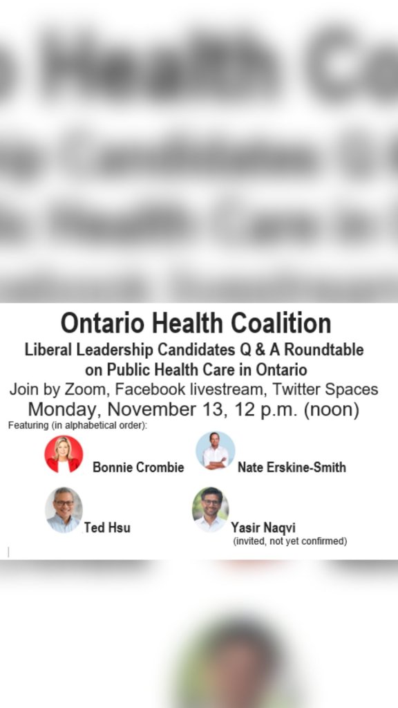 Leadership candidates will answer questions about their commitments and plans for Ontario’s hospitals, home & community care, #LTC (long-term care), public health, EMS, #Covid, and primary health care.